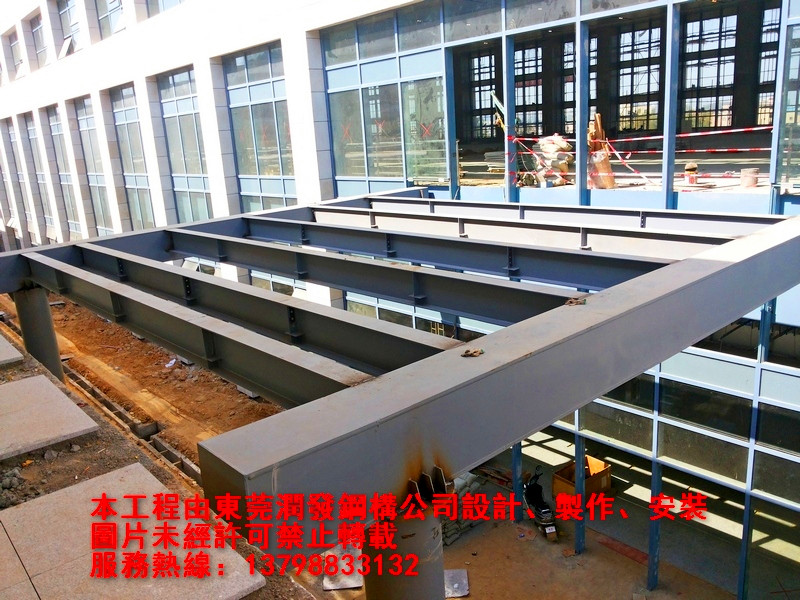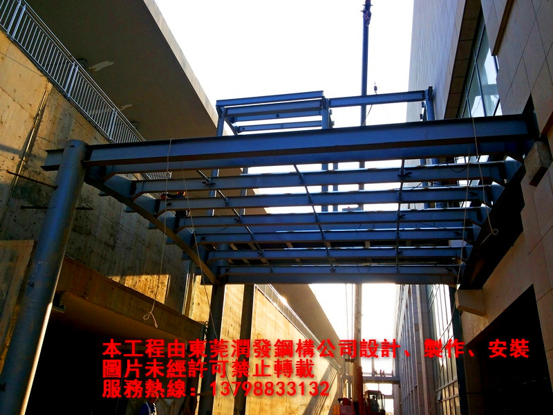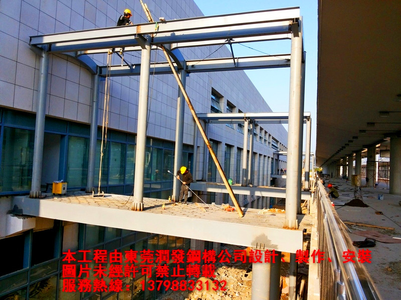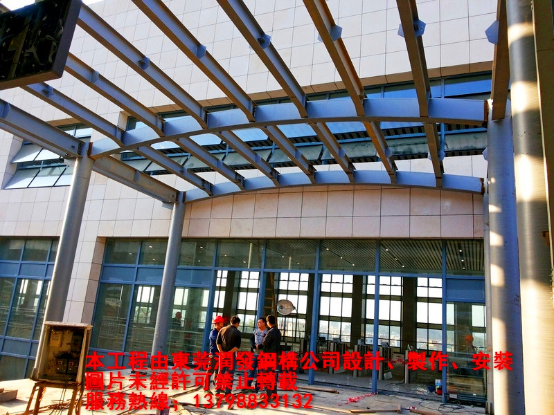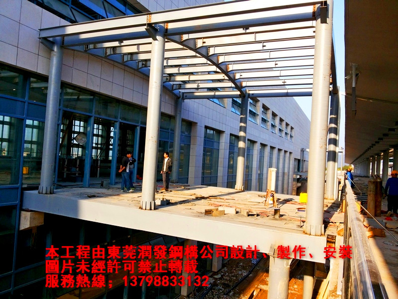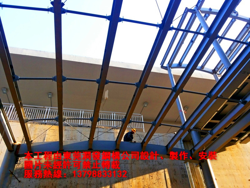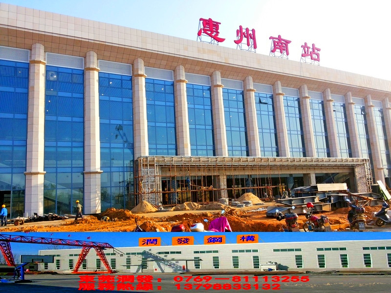 本工程為廈深鐵路惠州南站的車站至鐵路站臺(tái)的鋼結(jié)構(gòu)天橋與雨棚工程,由東莞潤(rùn)發(fā)鋼構(gòu)設(shè)計(jì)、制作、安裝,總用鋼量為410噸。歡迎各界朋友親臨現(xiàn)場(chǎng)參觀、指導(dǎo)!
