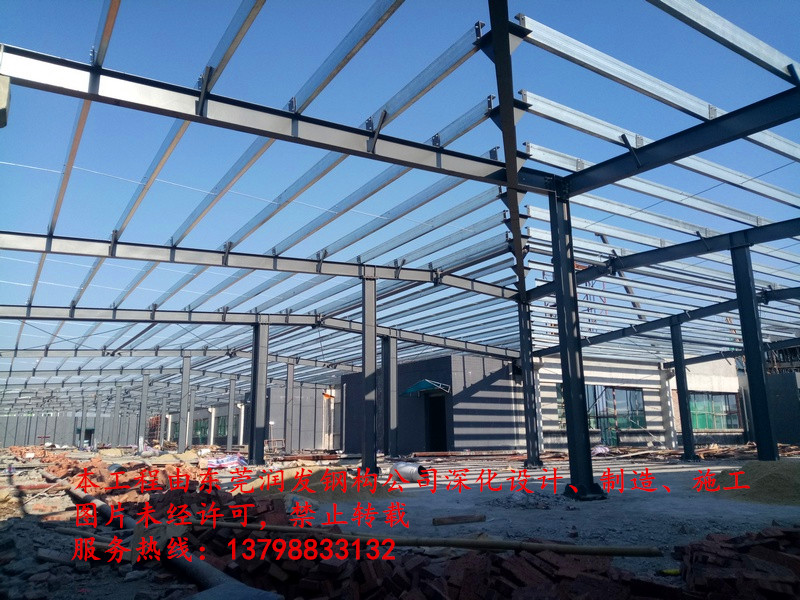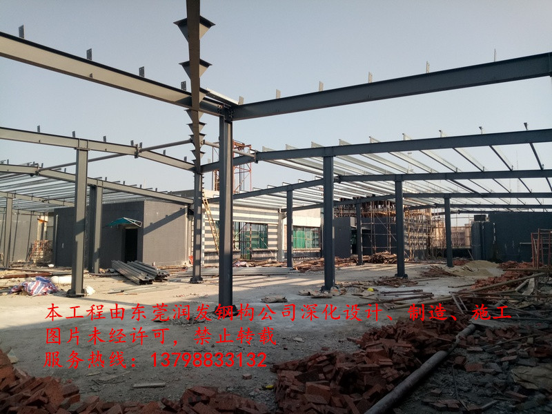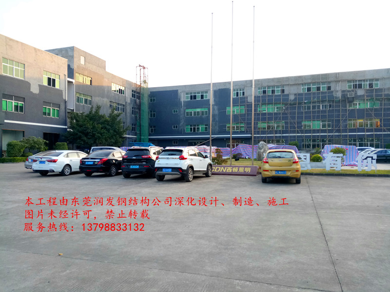 本項(xiàng)目為東莞潤發(fā)鋼結(jié)構(gòu)工程有限公司,在惠州市惠城區(qū)水口鎮(zhèn)東江工業(yè)區(qū)的西頓照明公司的頂樓廠房加建項(xiàng)目,主要工程為實(shí)驗(yàn)室頂樓加建庫房,通道加建樓承板夾層,原三樓車間頂樓加建車間等工程,建筑物四周為磚砌體,屋面為鋼結(jié)構(gòu)屋面加蓋巖棉夾芯瓦,本工程的土建、鋼結(jié)構(gòu)、水電、消防、防雷等由本公司深化設(shè)計(jì)、制造、施工。建筑面積約為4000平方米。