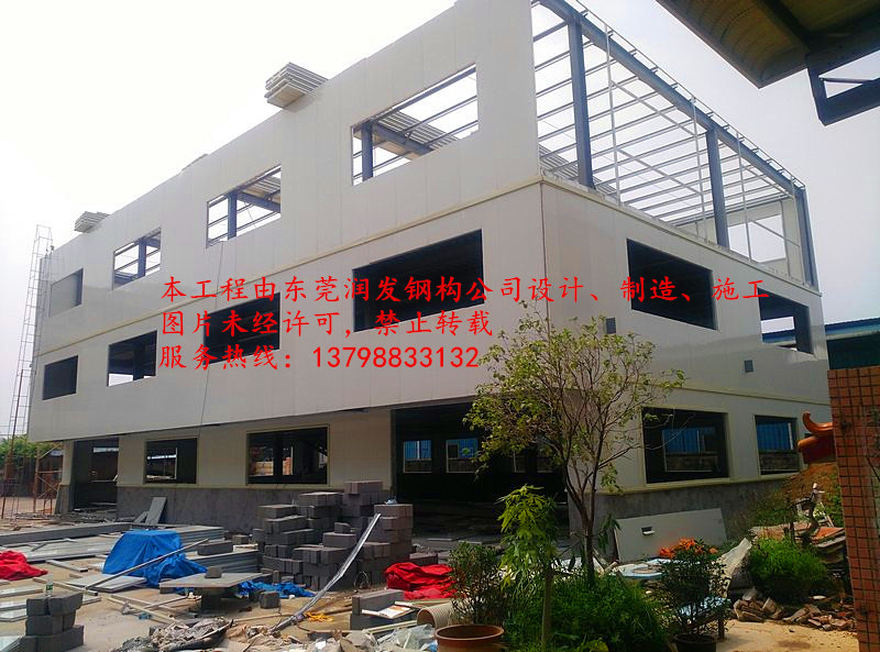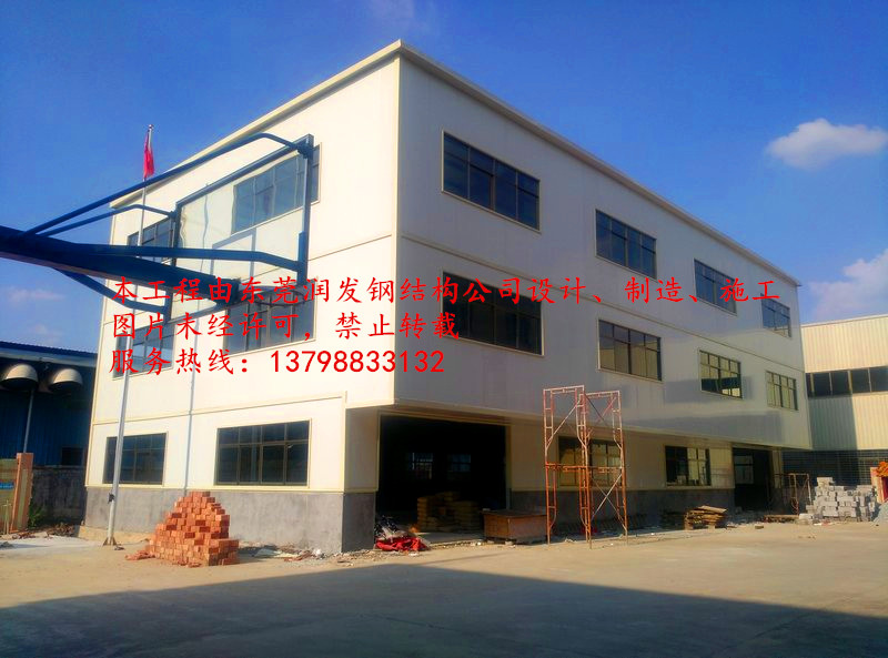 本工程為東莞潤發(fā)鋼結構工程有限公司,在東莞萬江(東莞惠康紙品廠)承建的多層鋼結構辦公樓工程項目,建筑面為1500平方米,本項目的全部工程(包含:打樁、基礎、地板、土建、鋼結構、水電部份)由東莞潤發(fā)鋼結構工程有限公司設計、制造、安裝,歡迎各位朋友、新老客戶到現(xiàn)場參觀、指導!服務熱線:13798833132(鐘經(jīng)理)。