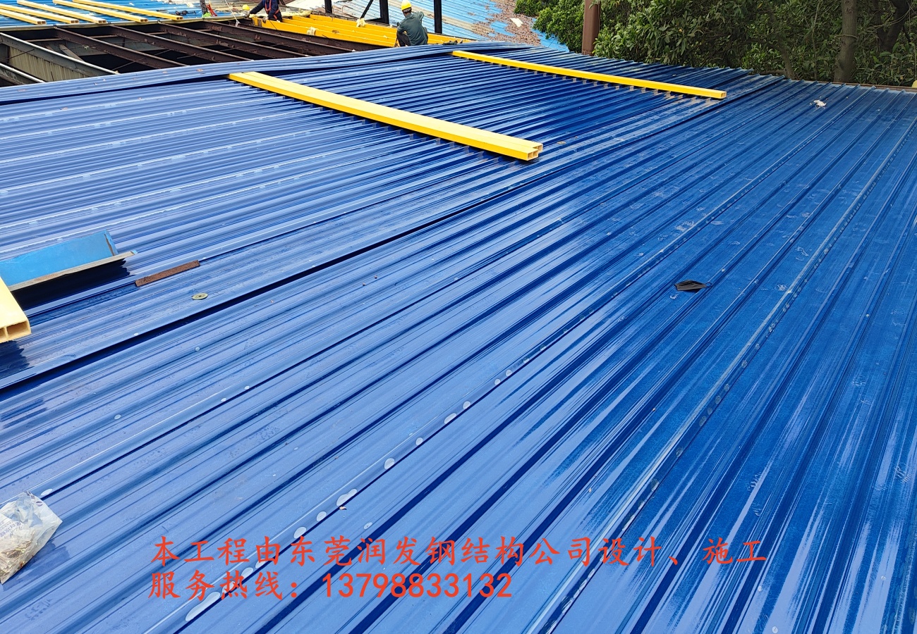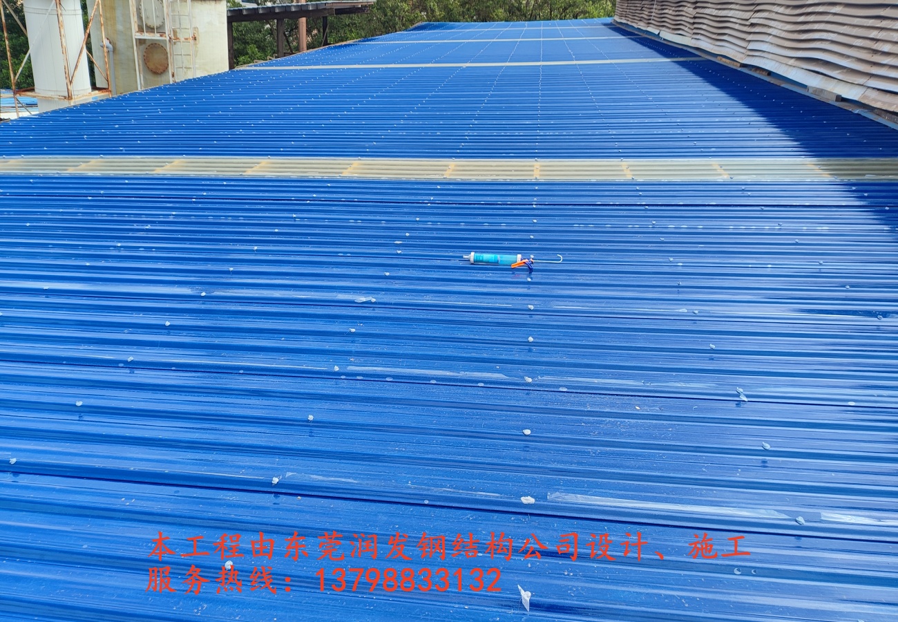 本工程為東莞潤(rùn)發(fā)鋼結(jié)構(gòu)工程有限承接的,在東莞市黃江鎮(zhèn)長(zhǎng)龍村竹園工業(yè)區(qū)鵬馳金制品廠,酸洗車屋面換瓦工程項(xiàng)目,本項(xiàng)目全部由本公司設(shè)計(jì)、制造、施工安裝,服務(wù)熱線:13798833132