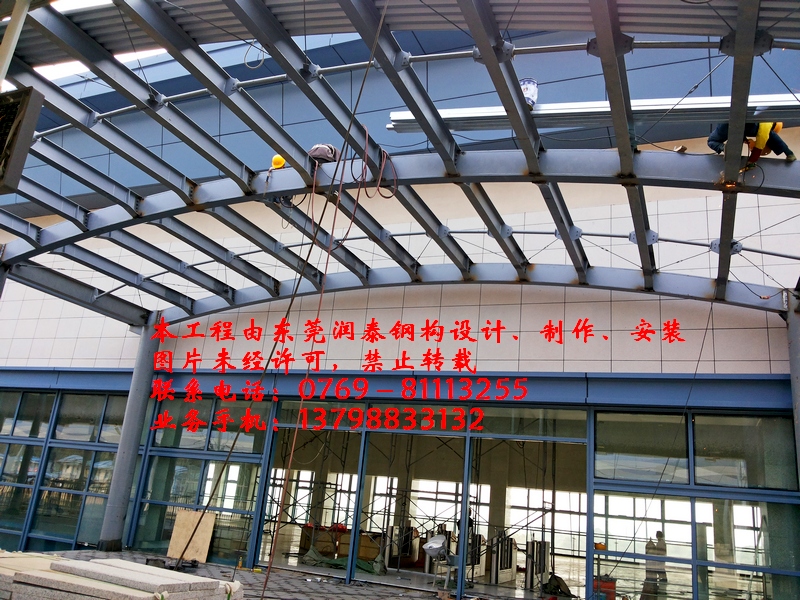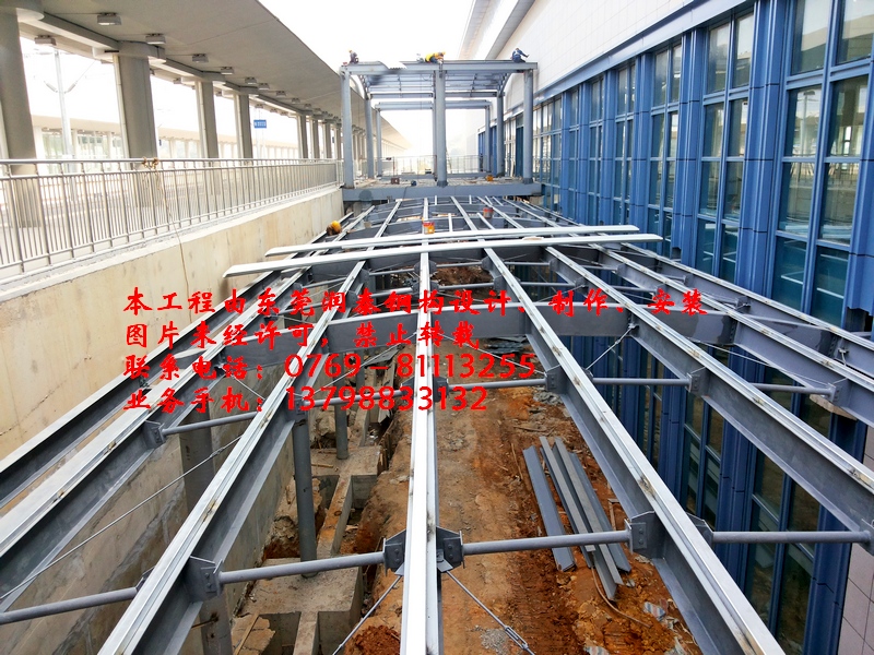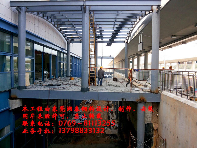 在一個(gè)月的工期,每天晚上加班加點(diǎn)緊張施工,總用鋼量520噸。昨天,由東莞潤(rùn)泰鋼構(gòu)承建的廈深高鐵惠站站房至站臺(tái)間的棧橋與雨棚工程,勝利通過(guò)檢測(cè),這標(biāo)致著廈深鐵路惠州南站站房與站臺(tái)之間的通訊、旅客進(jìn)出已完全連接,原訂12月26日正式通車已完全具備條件。將于12.26開(kāi)始售票通車,本工程由潤(rùn)泰鋼結(jié)構(gòu)工程有限公司設(shè)計(jì),制作,安裝。歡迎各界朋友、客戶商親臨現(xiàn)場(chǎng)參觀指導(dǎo)工作!