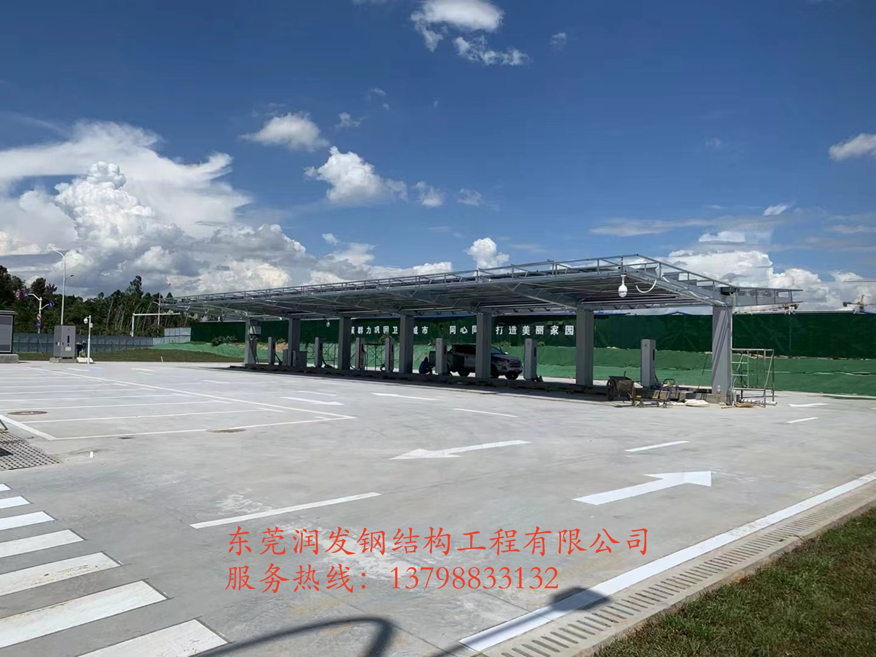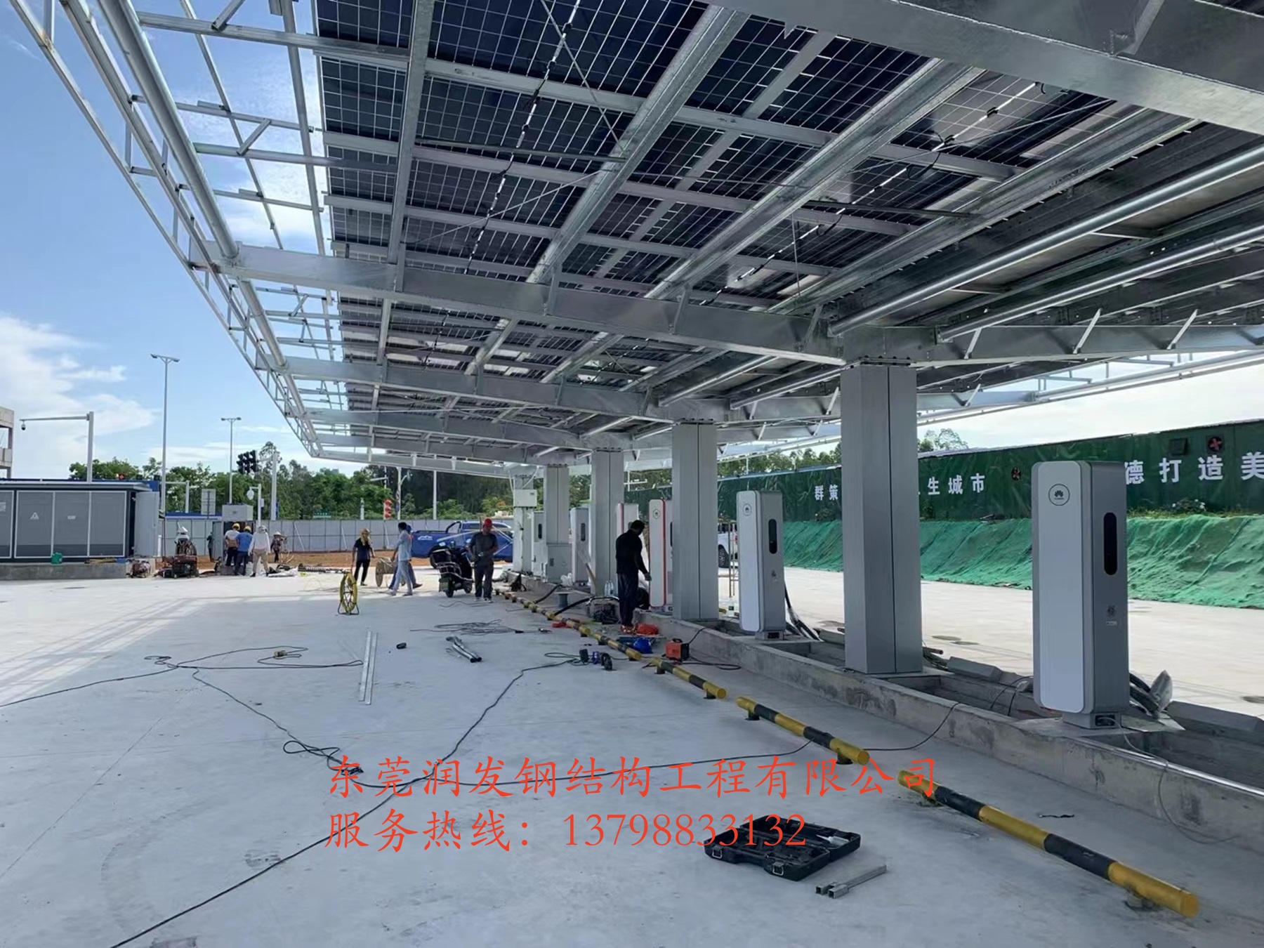 本工程是由東莞潤(rùn)發(fā)鋼構(gòu)公司在海南省儋州市排浦鎮(zhèn)海花島施工安裝的集光伏發(fā)電、儲(chǔ)能、超級(jí)快充為一體的超級(jí)充電站,聯(lián)系電話:13798833132.