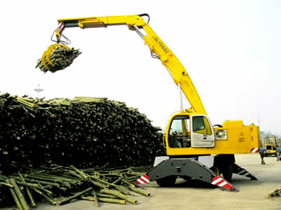 QLYS-DZ系列液壓輪胎式抓料機(jī)是一種流動(dòng)式裝卸、堆垛和拆垛專用設(shè)備,含有多項(xiàng)專利技術(shù)。該產(chǎn)品采用折疊式吊臂,克服了汽車起重機(jī)軟索起重時(shí)抓斗易打轉(zhuǎn)和作業(yè)時(shí)無下壓力,而對較積實(shí)的物料抓取效果差等不足。是對草葦、木材、毛竹、廢紙、土、砂、石等泡松散軟原料進(jìn)行裝卸、堆垛和拆垛作業(yè)的最佳設(shè)備。