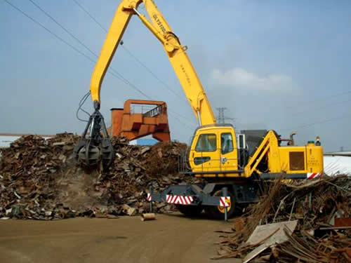 QLYS10DZ雙動(dòng)力輪式抓鋼機(jī)在再生資源公司投入使用