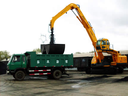 新型二節(jié)臂履帶卸車機廣泛應用在各大火車站貨場