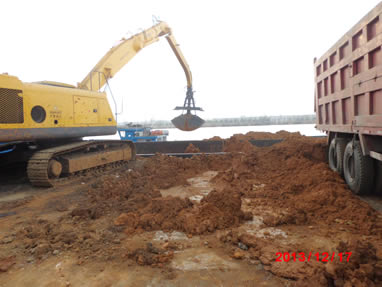 在江蘇某碼頭貨場(chǎng),八達(dá)重工為其專門設(shè)計(jì)了抓斗退料裝置,解決了該碼頭大量運(yùn)輸?shù)逆囃烈蛘承蕴蟾街谧ザ飞?,不易掉落而影響裝卸速度的問題,使鎳土卸船效率較老設(shè)備提高了好幾倍,贏得了客戶贊譽(yù)。